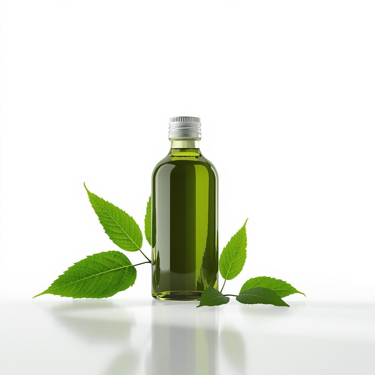 Bulk neem oil in glass bottles with fresh neem leaves for wholesale and export supplyNeem Oil